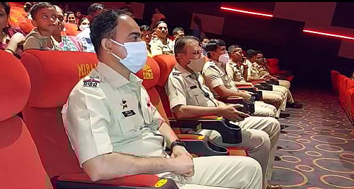 'सूर्यवंशी' चित्रपटाला प्रेक्षकानकडून चांगलाच प्रतिसाद मिळत आहे. दरम्यान अंबरनाथमध्ये मिराज सिनेमाच्या वतीनं पोलिसांसाठी 'सूर्यवंशी' हा चित्रपटाच्या विशेष शोचं आयोजन करण्यात आला.