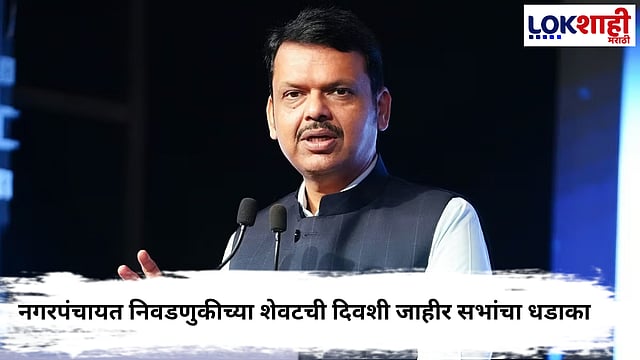 याच पार्श्वभूमीवर नगरपंचायत निवडणुकीच्या शेवटची दिवशी जाहीर सभांचा धडाका असणार असून मुख्यमंत्री देवेंद्र फडणवीस यांचा आज पाच जिल्ह्यांत झंझावाती दौरा असणार आहे. एकाच दिवशी मुख्यमंत्री देवेंद्र फडणवीस तब्बल सात सभांमध्ये संबोधित करणार आहेत. यामध्ये छत्रपती संभाजीनगर, बीड, अहिल्यानगर, पुणे, नाशिक जिल्ह्यात मुख्यमंत्री देवेंद्र फडणवीस यांच्या सभांचे नियोजन आहे.