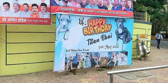 इंटरनेटच्या (Internet) या युगात वाढदिवस असो की कोणताही समारंभ, विविध जाहिरातीचे फलक सार्वजनिक ठिकाणी लावलेले असतात. काहीवेळा तर याचे प्रमाण अतिच होते. कोणताही चौक रिकामा नसतो. अशाच या बॅनरबाजीला कंटाळून म्हणा किंवा हौस म्हणून शहरातील एचडीएफसी सर्कल परिसरात काही अज्ञातांनी 'टायटन भाई' या कुत्र्याच्या पहिल्या वाढदिवसानिमित्त शुभेच्छा देणारे बॅनर लावले आहेत.