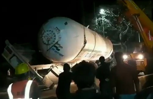 या घटनेची माहिती मिळताच अग्निशमन दलाची 1 गाडी, वाहतूक पोलिसांची 1 रेस्क्यू व्हॅन आणि क्रेन मशिन दाखल झाली होती. क्रेन मशिनच्या सहाय्याने या टँकरला उभा करण्यात आले. त्यानंतर रस्ता धुवून वाहतूक कोंडी सोडविण्यात आली.