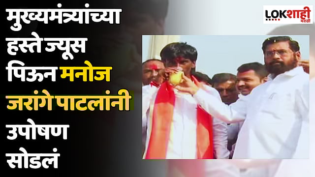 आज मुख्यमंत्र्यांच्या हस्ते ज्यूस पिऊन मनोज जरांगे पाटील यांनी उपोषण सोडलं. मुख्यमंत्र्यांनी मनोज जरांगे पाटील यांची गळाभेट घेत पाठ थोपटली आणि मुख्यमंत्र्यांच्या हस्ते मनोज जरांगे यांनी उपोषण सोडले. जरांगे पाटलांची विजयी सभा आज वाशीमध्ये पार पडणार आहे. मराठा बांधवांकडून जल्लोष साजरा करण्यात येत आहे. तसेच मनोज जरांगे पाटील यांची वाशीत होणाऱ्या विजयी सभेत एक-दोन नव्हे तर तब्बल सात जेसीबीच्या माध्यमातून जरांगे पाटील यांच्यांवर फुलांची उधळण करण्यात आली.