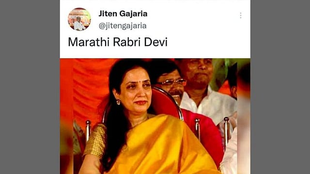 राज्याचे मुख्यमंत्री उद्धव ठाकरे (CM uddhav thackeray) यांच्या पत्नी रश्मी ठाकरे (rashmi thackeray) यांचा उल्लेख मराठी राबडी देवी (rabri devi) केल्याने भाजप नेते (bjp leader) जितेन गजारिया (Jiten Gajaria) यांना पोलिसांनी चौकशीसाठी ताब्यात घेतले आहे. गजारिया यांनी रश्मी ठाकरे यांचा फोटो ट्विट (tweet) करून मराठीत राबडी देवी असा उल्लेख केला होता. त्यानंतर मुंबई पोलिसांच्या (mumbai police) सायबर शाखेने (cyber crime) त्यांना ताब्यात घेतले असून त्यांची चौकशी सुरू केली आहे. त्याचवेळी थेट बिहारमधून या संपूर्ण प्रकारावर तीव्र संताप व्यक्त केला गेला आहे.