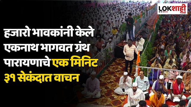 सुरेश वायभट/पैठण; पैठण येथे सुरु असलेल्या ग्रंथ कौस्तुभ एकनाथ भागवत सप्ताहात आज एकनाथी भागवत ग्रंथ पारायणाचे एकाचवेळी १ हजार ८८० भाविकांनी केवळ १ मिनिट ३१ सेकंदात वाचन करुन नवा विक्रम केला आहे. एकाचवेळी पारायणाच्या ओवीचे वाचन करतांनाचा ऐतिहासिक क्षण पैठण करांसाठी अविस्मरणीय ठरला. या ऐतिहासिक पारायण वाचनाच्या विक्रमाची नोंद इंडीया वर्ड स्टार रेकॉर्ड या संस्थेने घेतली असून आयोजक नाथवंशज हभप योगीराज महाराज गोसावी यांना प्रमाणपत्र प्रदान केले.