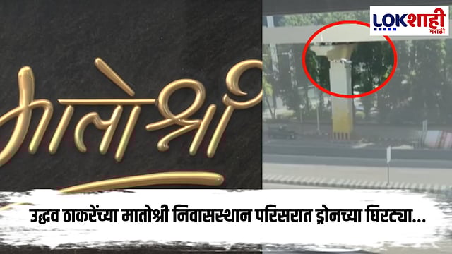 ठाकरे कुटुंबाच्या मातोश्री निवासस्थानी एक अज्ञात ड्रोन फिरताना आढळला आहे. मातोश्रीच्या परिसरात ड्रोन दिसल्याने सुरक्षारक्षकांना धक्का बसला. त्यावेळी ड्रोनचा व्हिडीओ घेतला गेला, जो सोशल मीडियावर व्हायरल झाला आहे. ठाकरे गटाने यावरून आरोप केला आहे की, ड्रोनच्या माध्यमातून मातोश्रीवर नजर ठेवली जात आहे.
