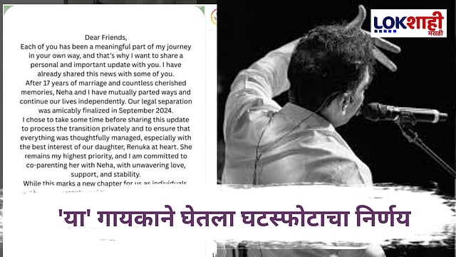 Famous singer Rahul Deshpande's Divorce News : प्रसिद्ध गायक राहुल देशपांडे यांनी त्यांच्या वैवाहिक आयुष्याबाबत एक महत्त्वपूर्ण निर्णय चाहत्यांसोबत शेअर केला आहे. १७ वर्षांच्या आनंदी विवाहानंतर राहुल आणि नेहा देशपांडे यांनी आपापसांत समजून-सुनावणी करून विवाह तोडण्याचा निर्णय घेतला आहे. हा निर्णय त्यांनी इन्स्टाग्राम पोस्टच्या माध्यमातून जाहीर केला. पोस्टमध्ये राहुल देशपांडे यांनी त्यांचे आणि नेहाचे १७ वर्षांचे जीवन अनेक सुखद आठवणींनी गहिर्या केलेले असल्याचे सांगितले. मात्र, या नात्यातून बाहेर पडण्याचा निर्णय दोघांनीही एकमताने घेतला आहे आणि आता ते स्वतंत्रपणे आपले जीवन पुढे नेतील, असे त्यांनी स्पष्ट केले आहे.