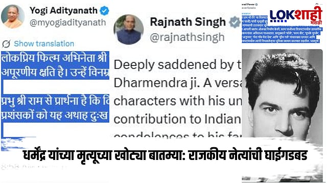 धर्मेंद्र यांच्या मृत्यूची माहिती मिळताच राजकीय नेत्यांनी ट्विट टाकत त्यांनी भावपूर्ण श्रद्धाजंली वाहली होती. परंतू आशियाच्या पोस्ट नंतर त्यांनी तातडीने ती पोस्ट डिलीट करत केली. यामध्ये संरक्षणमंत्री राजनाथ सिंग , शरद पवार , खासदार सुप्रिया सुळे यांच्या नावाचा समावेश आहे.