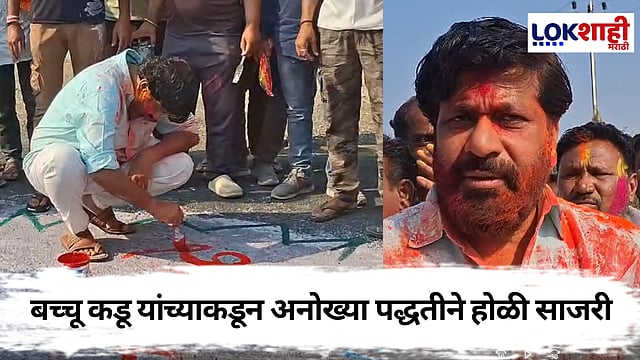 आज राज्यभरात धुलीवंदनाचा सण मोठ्या उत्साहात साजरा केला जात आहे. बच्चू कडू यांच्याकडून अनोख्या पद्धतीने होळी साजरी करण्यात आल्याचे पाहायला मिळत आहे. बच्चू कडू यांनी धुलीवंदनाच्या निमित्ताने सरकारचे लक्ष वेधण्यासाठी भिंती रंगवत अनोखी होळी साजरी केली आहे. रस्ते रंगवत बच्चू कडूंनी सरकारकडे अनेक मागण्या केल्या आहेत.