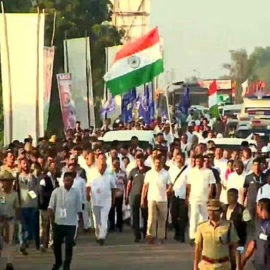 सध्या देशभरात काँग्रेसची 'भारत जोडो यात्रा' सुरु आहे. राहुल गांधींच्या नेत्तृत्वात ही आता महाराष्ट्रात दाखल झाली आहे. आज नांदेडमधील देगलूर या ठिकाणी ही पदयात्रा पोहोचली आहे. काँग्रेसच्या या पदयात्रेला जनतेकडून चांगला प्रतिसाद मिळत असल्याचं चित्र सोशल मीडियात निर्माण झालं आहे.यावेळी राहुल गांधी आणि त्यांच्यासोबत असलेल्या हजारो कार्यकर्त्यांच्या हाती मशाली घेतल्या होत्या. ही कन्याकुमारी ते काश्मीर अशी ही पदयात्रा काढण्यात आली आहे.