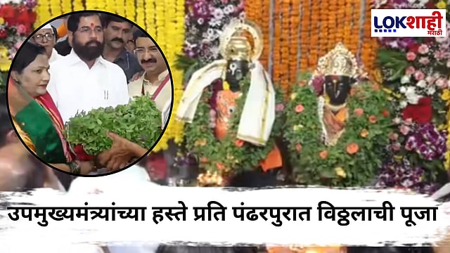 आषाढी एकादशीनिमित्त वडाळ्यातील प्रति पंढरपूर म्हणून ओळखल्या जाणाऱ्या श्री विठ्ठल-रुक्मिणी मंदिरात आज पहाटे उपमुख्यमंत्री एकनाथ शिंदे यांनी सहपत्नीक विठ्ठलाची पूजा केली. पांडुरंगाला अभिषेक करत आरती संपन्न झाली. यावेळी एकनाथ शिंदे यांनी प्राचीन असलेल्या प्रति पंढरपूर मंदिराची महती सांगितली. संत तुकारामांनी बांधलेलं हे मंदिर परिसर सुशोभित करण्यासाठी तसेच येथे येणाऱ्या भाविकांकरता सोयी-सुविधा उपलब्ध करून देण्यासाठी शासनाकडून निधी उपलब्ध देणार असल्याचे यावेळी एकनाथ शिंदे यांनी सांगितले. तसेच राज्यातील शेतकऱ्याला, बळीराजाला सुखी ठेव, भरपूर पाऊस पडू दे, भरपूर पीक येऊ दे असं साकडं शिंदे यांनी विठुरायाकडे केल्यानं म्हटलं आहे. त्यासोबत वारी, लाडकी बहिण सर्वांनाच सुखी ठेवण्याची प्रार्थनाही त्यांनी यावेळी केल्याचे सांगितले. यावेळी उपमुख्यमंत्री एकनाथ शिंदे यांनी पत्नी उपस्थित असून शिवसेने काही नेते, पदाधिकारीदेखील मंदिरात आल्याचे पाहायला मिळाले.