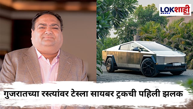 इलॉन मस्क यांची कंपनी टेस्लाची सायबर ट्रक गुजरातमधील सुरतमध्ये पोहोचली आहे. सुरतमधील प्रसिद्ध हिरे व्यापाऱ्यानं याची ऑर्डर दिल्याची माहिती समोर आलीये. प्रसिद्ध व्यापारी लवजी बादशाह यांनी याची ऑर्डर दिल्याची माहिती समोर आली आहे. हिरे व्यापारी आणि कारप्रेमी लवजी यांनी त्यावर आपल्या घराचं 'गोपिन' हे नाव देखील लिहिलं आहे.