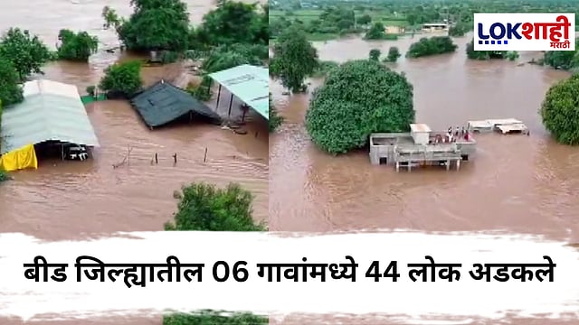 बीडमध्ये पावसाचा हाहाकार पाहायला मिळाला आहे. बीडमध्ये मुसळधार पावसामुळे नदीला महापूर आला आहे. बीड जिल्हातील आष्टी तालुक्यामधील, कडा गावामध्ये 11 लोक, सोभा निमगाव मध्ये 14 लोक, घाटा पिंपरी 7 लोक, पिंपरखेड 6 लोक, धानोरामध्ये 3 आणि डोंगरगण मध्ये 3 असे लोक अडकलेले आहेत. एकूण 6 गावात 44 लोकं अडकलेली आहेत .