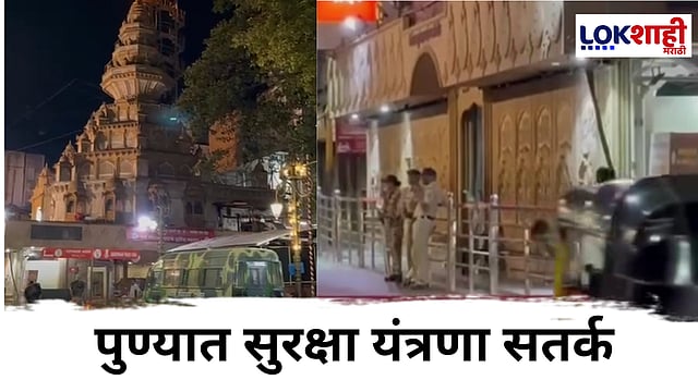 पुणे शहरातही सुरक्षा यंत्रणा अलर्ट मोडवर आहेत. याच पार्श्वभूमीवर श्रीमंत दगडूशेठ हलवाई गणपती मंदिराची सुरक्षा अधिक वाढवण्यात आली आहे. मंदिर परिसरात मोठ्या प्रमाणावर पोलीस व आर्मीचे जवान तैनात असून, प्रत्येक व्यक्तीवर बारकाईने नजर ठेवली जात आहे.