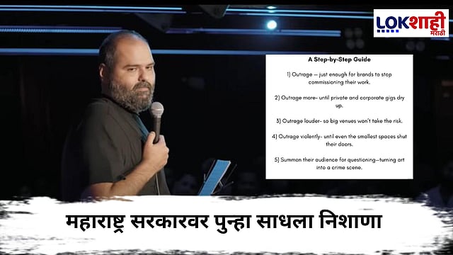 स्टँड-अप काॅमेडियन कुणाल कामरा याने पुन्हा एकदा महाराष्ट्र सरकारवर निशाणा साधला आहे. त्याने सरकारविरोधात ट्विट करत सरकारला डिवचले आहे. एखाद्या कलाकाराला हुकुमशाही पद्धतीने कसं मारायचं याचे मुद्दे कुणालने आपल्या ट्विटमध्ये मांडले आहेत. त्याने नमूद केले आहे की, १. कलाकाराला त्याचं काम सुरु होण्याच्या आधीच थांबवण्यास भाग पाडणं, २. कलाकाराला खासगी आणि काॅर्पोरेट कार्यक्रम मिळू नये अशी परिस्थिती निर्माण करणं, ३. मोठे क्लब कार्यक्रमासाठी जागा देण्याची जोखीम पत्करणार नाहीत, अशी परिस्थिती निर्माण करणं, ४. प्रेक्षकांना समन्स पाठवणं, कलेला क्राईम सीन बनवणं, ५. कलाकाराला त्याचा आत्मा विकायला भाग पाडणं किंवा त्याला पूर्णच शांत करणं, ६. कलाकाराला शांत करण्यासाठी राजकीय शस्त्र वापरणं.