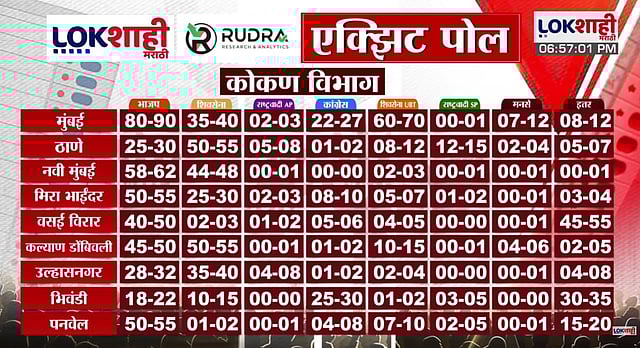 लोकशाही मराठी आणि रुद्रने दिलेल्या Exit Poll नुसार कोकण विभागाचा Poll दिला आहे.