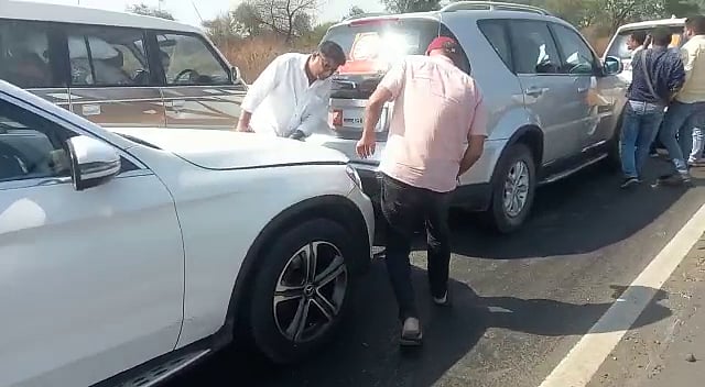 औरंगाबाद : राज ठाकरे (Raj Thackeray) यांच्या ताफ्याला औरंगाबादकडे (Aurangabad) जाताना अपघात झाला आहे. राज ठाकरे उद्या यांची औरंगाबादेत सभा पार पडणार आहे. त्यासाठी ते पुण्याकडून (Pune) औरंगाबादकडे जात होते. राज ठाकरे हे कालच मुंबईतील (Mumbai) आपल्या निवासस्थानातून पुण्याकडे रवाना झाले होते. त्याठिकाणहून कार्यकर्त्यांसह ते आता आज औरंगाबादकडे रवाना झाले आहेत. यादरम्यान, त्यांच्या ताफ्याला अपघात झाला असून, अपघातात काही गाड्यांचं किरकोळ नुकसान झाल्याचं समजतंय. (Raj Thackeray Car Accident, Auranagabad)