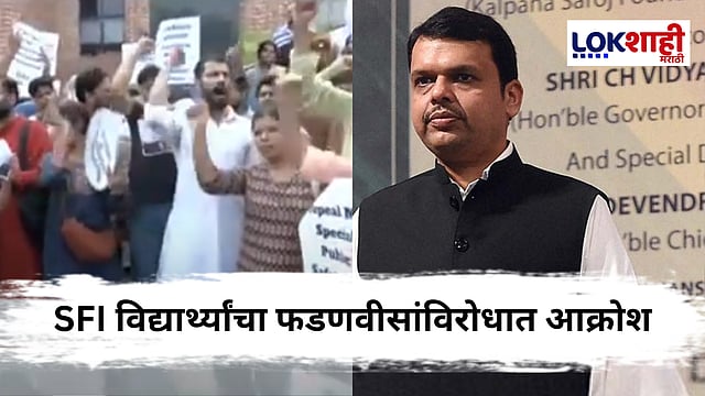 आज मुख्यमंत्री देवेंद्र फडणवीस हे दिल्लीत गेले असून तिथे जेएनयूमध्ये होणाऱ्या कार्यक्रमासाठी ते उपस्थित राहणार होते. मात्र फडणवीस त्याठिकाणी पोहचण्याआधीच देवेंद्र फडणवीस, एकनाथ शिंदें गो बँक अशा जोरदार घोषणाबाजी करत, जेएनयू कँम्पसमध्ये स्टुडंट्स फेडरेशन ऑफ इंडिया (SFI)चं आंदोलन सुरु झालं.