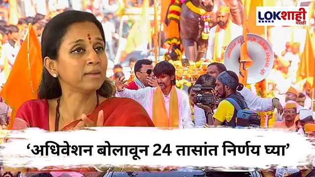 मुख्यमंत्री देवेंद्र फडणवीस आणि दोन्ही उपमुख्यमंत्री एकनाथ शिंदे आणि अजित पवार यांनी सर्वपक्षीय बैठक घ्यावी, एकदिवसीय विधिमंडळ अधिवेशन बोलावले आणि २४ तासांत निर्णय घ्यावा, अशी मागणी शरद पवार गटाच्या खासदार सुप्रिया सुळे यांनी पत्रकारांशी बोलताना केली. आझाद मैदानावर मनोज जरांगे-पाटील यांची भेट घेऊन त्यांनी आंदोलनाला पाठिंबा दर्शविला.