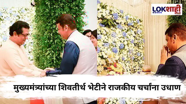 CM Devendra Fadnavis Meet Raj Thackeray : आज गणरायाचे सर्वत्र आगमन झाले. देशात सर्वत्र गणोशोत्सव जोरदार साजरा केला जात आहे. मनसे पक्षप्रमुख राज ठाकरेंच्या दीड दिवसांचे गणपती विराजमान झाले आहेत. राज्याचे मुख्यमंत्री देवेंद्र फडणवीस राज ठाकरेंच्या बाप्पाच्या दर्शनासाठी शिवतीर्थवर गेले होते. शिवतीर्थवरून उद्धव ठाकरे बाहेर पडताच मुख्यमंत्री देवेंद्र फडणवीस राज ठाकरेंकडे गणपती दर्शनाला पोहोचले होते. त्यामुळे राजकीय वर्तुळातून चर्चांना उधाण आले आहे.