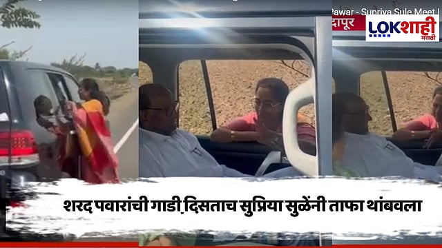 इंद्रापूर येथील दौरा आटपून पुरंदरच्या दिशेने जात असताना सुप्रिया सुळे यांनी रस्त्याच शरद पवार यांनी भेट घेतली. शरद पवार आणि प्रतिभाताई पवार हे बारामतीला जात होते. त्याच वेळेला शरद पवार आणि प्रतिभाताई पवार बसलेल्या गाडीच्या दिशेने गेल्यात. यानंतर सुप्रिया सुळेंनी दोघांना भेट घेतली. शरदचंद्र पवार गटाचे शरद पवार आणि सुप्रिया सुळे हे दोघेही सध्या दौऱ्यावर आहेत. हे दौरे सुरु असताना मोरगाव येथे रस्त्यातच पवार कुटुंबातील लेकीची भेट झाल्याचे पाहायला मिळाले. यावेळी दोघांमध्ये काही क्षण काहीतरी संवाद झाला.