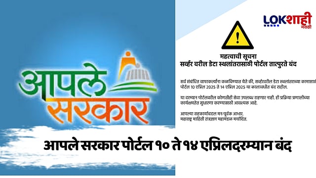 महाराष्ट्र शासनाच्या 'आपले सरकार' पोर्टलवरील सेवा येत्या १० एप्रिल ते १४ एप्रिल २०२५ या कालावधीत पाच दिवसांसाठी बंद राहणार आहेत. या कालावधीत पोर्टलवरील सर्व सेवा तात्पुरत्या स्थगित करण्यात येणार असून नागरिकांना महसूल, शैक्षणिक प्रमाणपत्रांसह अन्य महत्त्वाच्या सेवांमध्ये अडथळ्यांचा सामना करावा लागणार आहे.