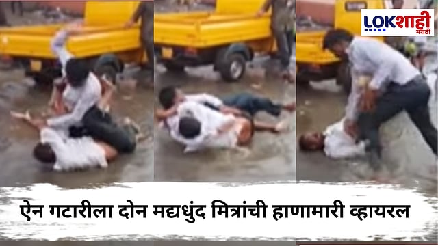 असं म्हणतात की नवरा-बायकोच्या आणि मित्रामित्रांच्या भांडणात शहाण्या माणसाने पडू नये, ते भांडून पुन्हा कधी एकत्र येतील, काही सांगता येत नाही. असचं काहीस चित्र सध्या एका व्हायरल व्हिडिओमधून पाहायला मिळत आहे. या व्हिडिओत दोन मित्र एकमेकांशी तुफान मारामारी करत आहेत. लोकांनी त्यांना अडवण्याच्या ऐवजी केवळ बघ्याची भूमिका घेतली आहे. दोन मद्यधुंद अवस्थेतील मित्र भररस्त्यात पावसामध्ये एकमेकांना बेदम मारत असल्याचा व्हिडिओ सध्या सोशल मीडियावर तुफान व्हायरल होत आहे. कधी चप्पलेनं, तर लाथेनं एकमेकांना आळीपाळीनं मारताना हे दोघे मित्र दिसत आहेत. आजूबाजूला जमलेली गर्दी मात्र त्यांना अडवण्याऐवजी त्यांच्या हाणामारीची मजा घेत असल्याचे दिसून येत आहे.