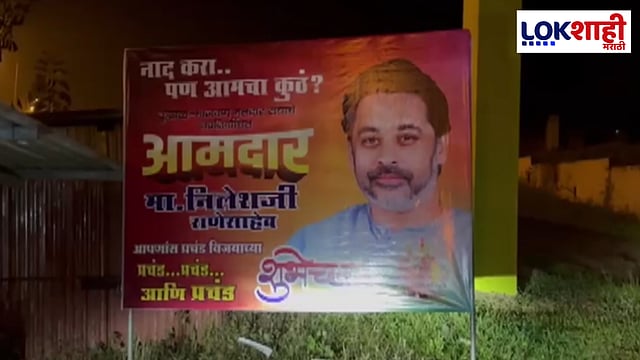सिंधुदुर्ग जिल्ह्यातील महामार्गालगत असलेल्या गावात कुडाळ-मालवण मतदारसंघातून शिवसेनेकडून उमेदवार असलेले निलेश राणे यांचे विजयी शुभेच्छा दिलेलं बॅनर लावण्यात आला आहे.