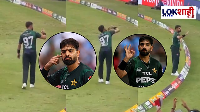 यानंतर हारिस रौफ सीमारेषेवर क्षेत्ररक्षण करत असातना टीम इंडियाला सपोर्ट करणाऱ्या क्रिकेटप्रेमींनी विराटच्या नावाचा जयघोष करत हारिस रौफला जागा दाखवली आणि त्याचा माज उतरवलेला पाहायला मिळाला. क्रिकेटप्रेमींचा जयघोष ऐकून त्याने कानावर हात ठेवत काहीच न ऐकल्यासारखं केलं, पण त्याच्या तोंडावरचा रंग उडालेला पाहायला मिळाला. हरिस रौफने 4 ओव्हरमध्ये 26 धावा देत 2 बळी घेतले.