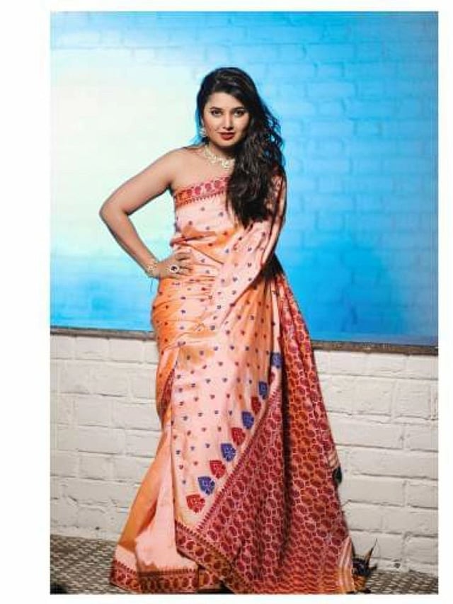 प्राजक्ता माळीने विना ब्लाउज साडी परिधान केली आहे.
